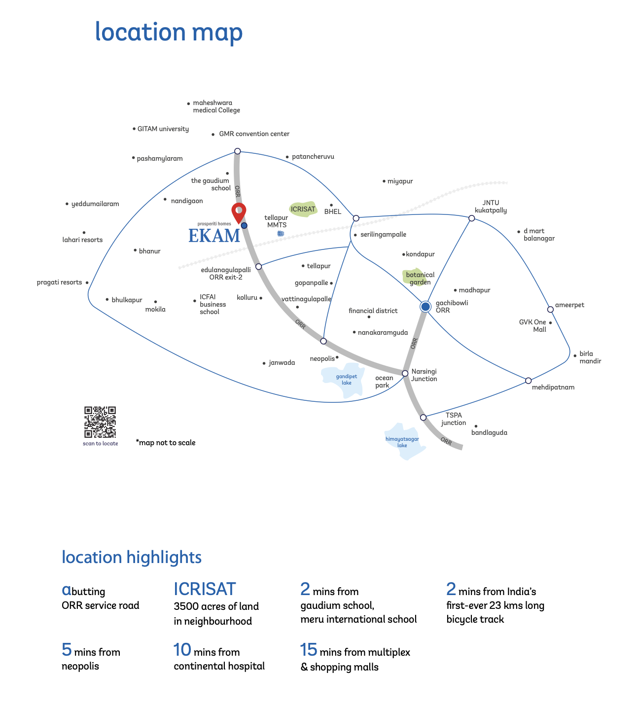 Ekam is a premium residential project by Prosperiti Homes, located in Velimela, Tellapur, Hyderabad. Designed around the philosophy of “Delight + Sustainability”, the project blends modern comfort with eco-conscious living.